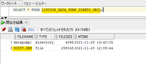 SELECT * FROM LISTDIR_DATA_PUMP_DIR@TO_ORCL;