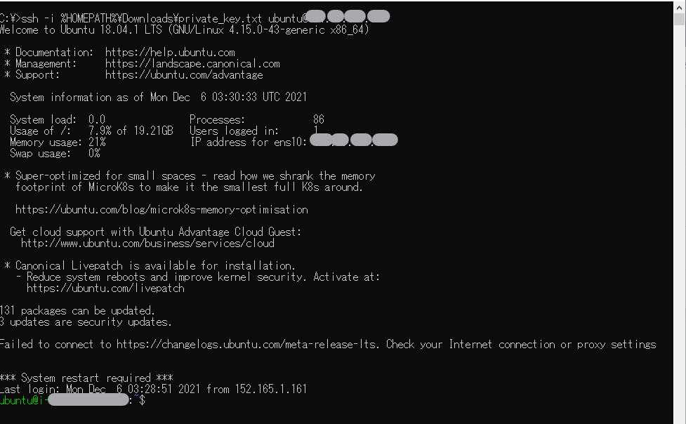 ssh -i %HOMEPATH%\Downloads\private_key.txt ubuntu@***.***.***.***