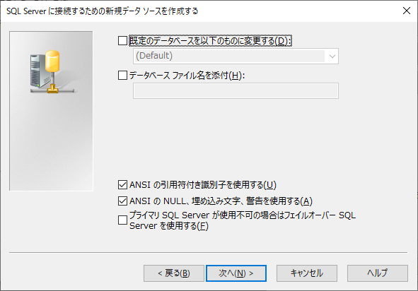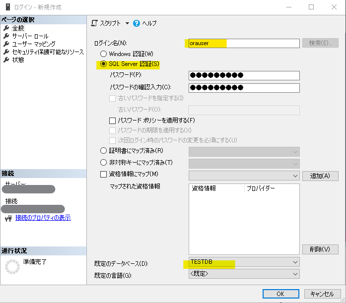既定のデータベースも、SQL Server のログイン作成したときに設定しているので不要です。
