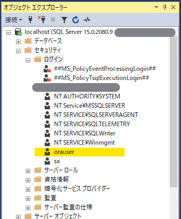 SQL Server 側にユーザを作成する