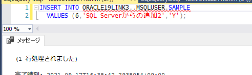 INSERT INTO ORACLE19LINK3..MSQLUSER.SAMPLE