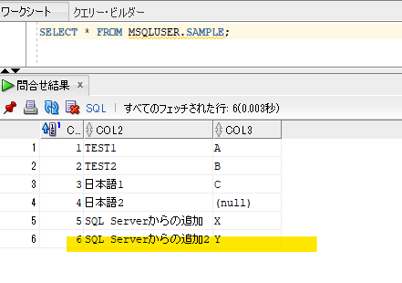 OPENQUERY を利用せずとも参照できました!では、レコード追加もしてみます。