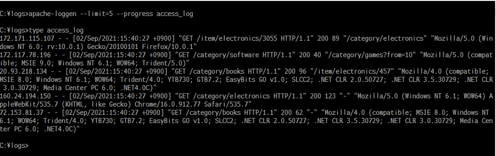 これを c:\logs\access_log というファイル名で配置しておきます。