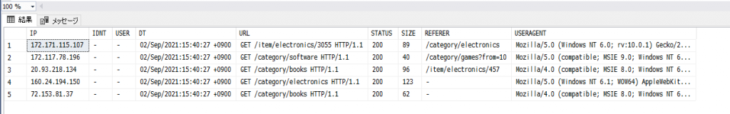 作成したフォーマットファイルを使ってアクセスログを読み込んでみます。