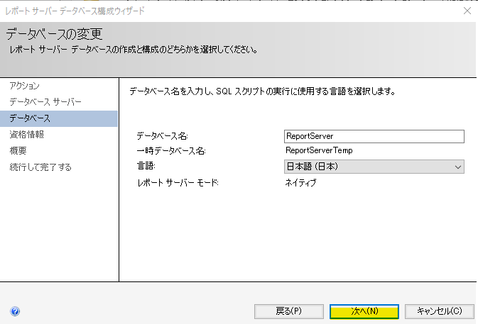 まず、SSRS 管理用のデータベースを作成します。