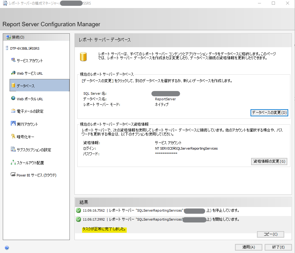 元の画面に戻るとレポートサーバは自動で再起動がかかっているようです。