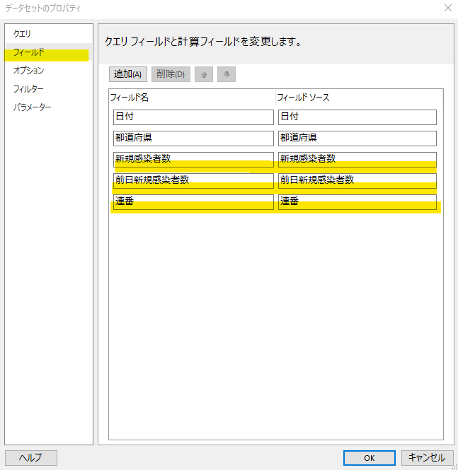 データセットに項目追加する方法には2通りあります。「データセットの元になるクエリ(SQL)そのものに項目を追加する方法」と「クエリ(SQL)の取得項目とは別に計算列として項目を追加する方法」です。今回はどちらも使います。