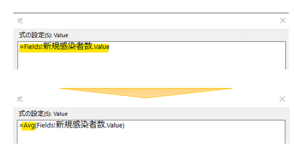=Avg(Fields!新規感染者数.Value)