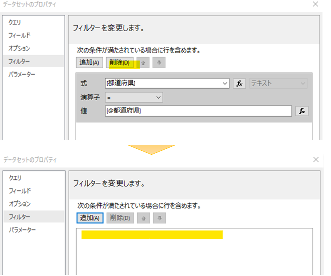 最後に都道府県をフィルタしていた定義を削除します。