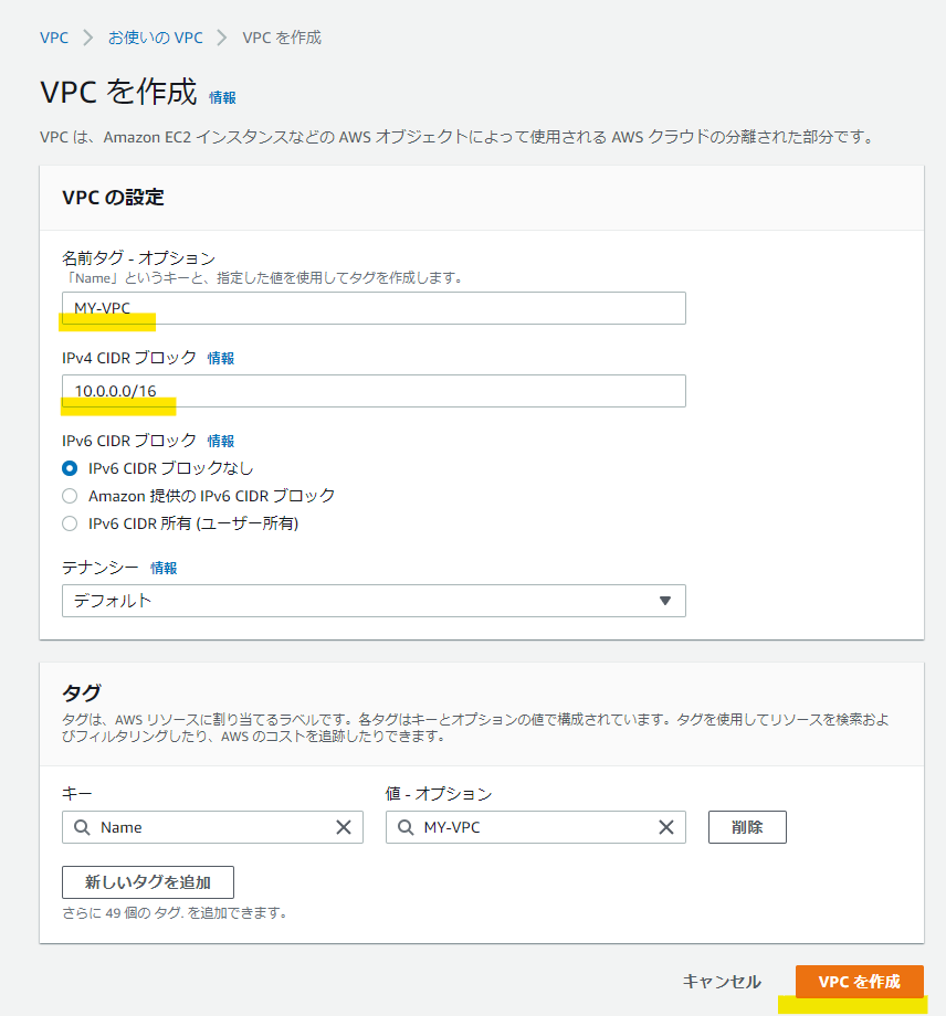 VPCの作成(2)
