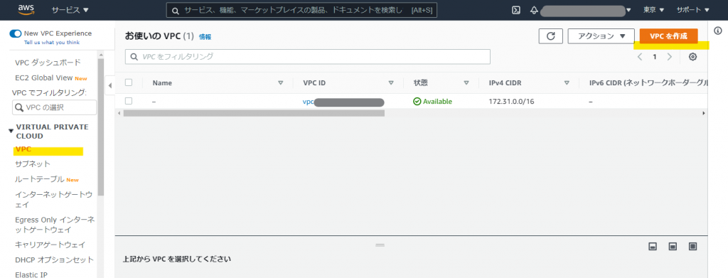 VPCの作成(1)