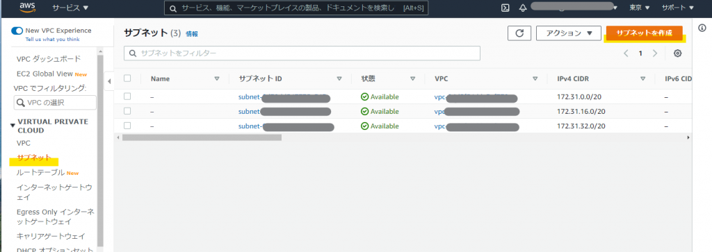 サブネットの作成