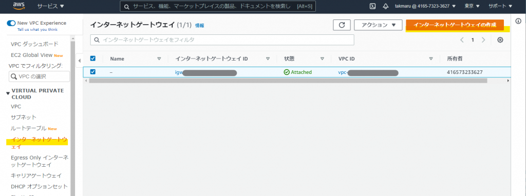 インターネットゲートウェイの作成(1)