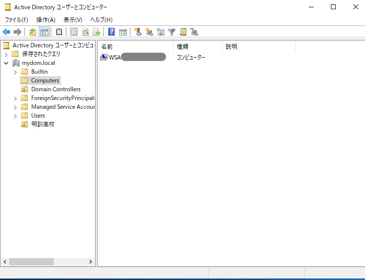 ちゃんとドメイン mydom.local に参加しているようですね。