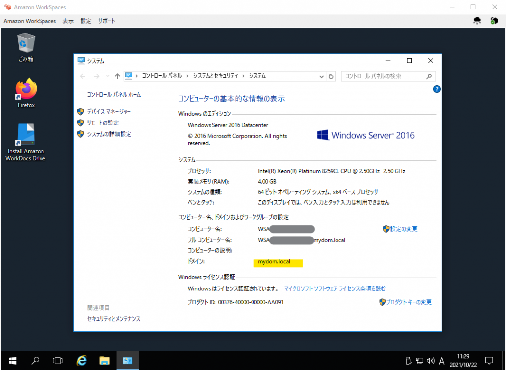 前回からの続きです。今回は Amazon WorkSpaces を起動し、AD Connector 経由でドメイン参加させてみたいと思います。