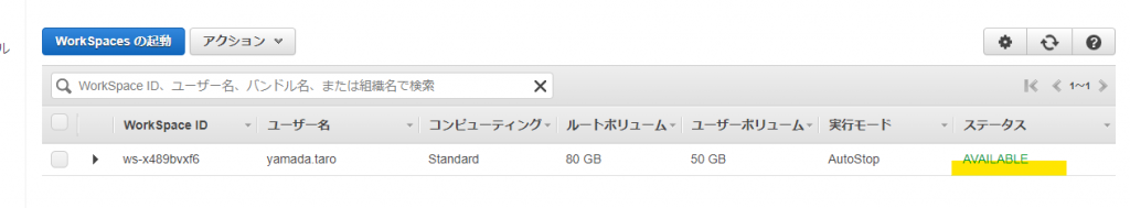 WorkSpaces のステータスが「PANDING」から「AVAILABLE」になれば完成です。