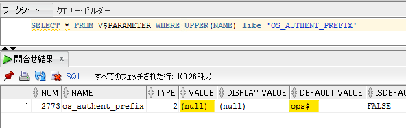 作業としては一般的な Oracle の OS 認証と同じです。ユーザ名には初期化パラメータである OS_AUTHENT_PREFIX (デフォルトOPS$)を接頭語につけるのですが、RDS for Oracle では NULL になっていました。